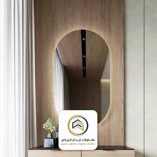 - كذلك مرايا جدارية كبيرة: تُعد المرايا الجدارية الكبيرة من أبرز خيارات الديكور في الرياض، حيث تساعد في إضفاء الاتساع والفخامة على المساحات المختلفة. لذلك، تتوافر هذه المرايا بأشكال هندسية متنوعة، مثل المستطيلة أو المربعة أو البيضاوية.