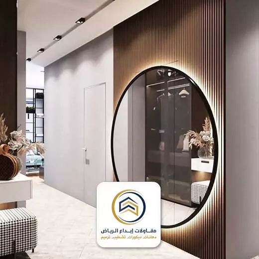 - كذلك مرايا جدارية دائرية: تعد المرايات الجدارية الدائرية من أبرز اختيارات الديكور في الرياض. لكن تتميز بقدرتها على إضفاء لمسة من الفخامة والأناقة على المساحات المختلفة، كما تساعد في إيهام المكان بالاتساع والسعة.